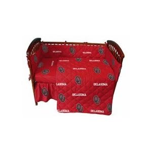 College Covers brand Crib set includes reversible comforter, two fitted sheets, bed skirt and bumper pad. All items are 100% cotton sateen 200 thread count for a softer feel than any other NCAA bedding available. Comforter, Sheets, bed skirt, and bumper pad are printed with all over Oklahoma Sooners logo pattern. Comforter and bumper pad are quilted for greater stability and unique look.